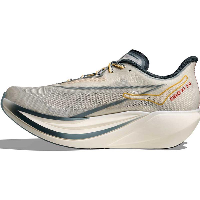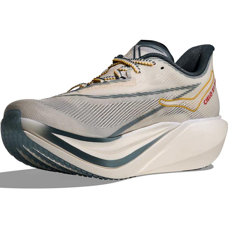 Mellomsålekonstruksjonen bygger videre på suksessen fra tidligere Cielo-modeller, men med viktige forbedringer. Utskjæringen på innsiden er fjernet, noe som gir økt stabilitet uten å gå på bekostning av løpsfølelsen. To lag med ekstremt responsivt PEBA-skum leverer maksimal energiretur, og mellom disse ligger en karbonplate i full lengde. Platen er kurvet og tilpasset skoens geometri, og fungerer som en fjær som driver deg fremover i hvert eneste steg.