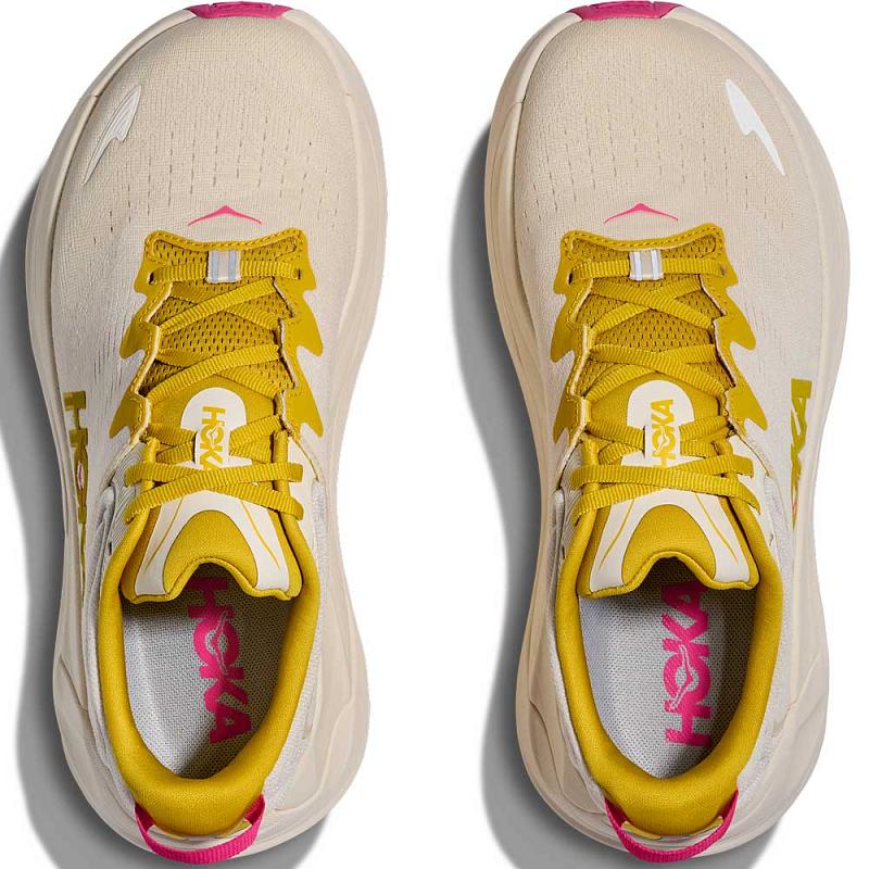 Hemmeligheten ligger i mellomsålen. Tett mot foten finner du Hoka's oppgraderte H-ramme-teknologi, som gir stabil støtte på begge sider av skoen – uten at den oppleves stiv eller klumpete. Resultatet er en naturlig og smidig stegavvikling, kombinert med trygg og solid støtte gjennom hele løpeturen. Rundt rammen og ned mot underlaget omsluttes konstruksjonen av mykt CM-EVA-skum, som sørger for behagelig demping og høy komfort.